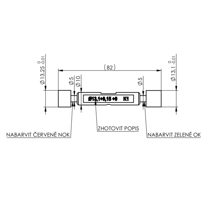 Válečkový kalibr na Měrový přípravek . Materiál kalibru 1.2343. Tepelné zpracování 50-52 HRC.