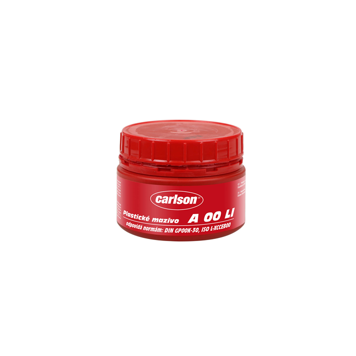 CARLSON® PLASTICKÉ MAZIVO A 00 LI je polotekuté převodové lithné plastické mazivo na bázi vysoce rafinovaného minerálního oleje a přísad zlepšujících přilnavost a antikorozní a antioxidační vlastnosti. CARLSON® PLASTICKÉ MAZIVO A 00 LI je určeno pro centrální tlakové mazací systémy automobilů, k mazání kluzných uložení mobilní techniky a pro některé pomaloběžné převodovky a řetězy, k používání ve středních teplotách a při dobrém utěsnění převodovky. Použitelné do teploty +90 °C.